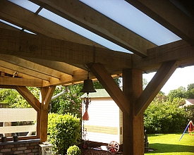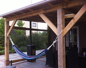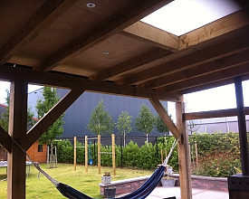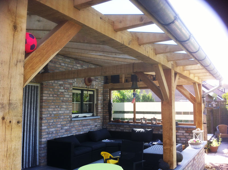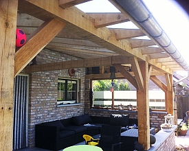 Prachtige Eikenhouten veranda met een aanbouw bij de Fam. Mol.